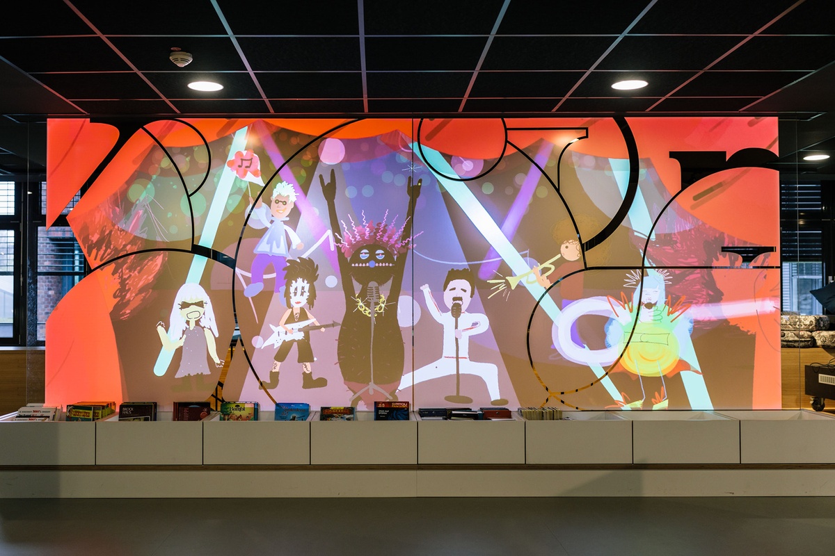 Ein digitaler Zeichen-Workshop zum Programm TagTool, mit dem man eine Glaswand gestalten kann – in der Stadtteilbibliothek Kalk
